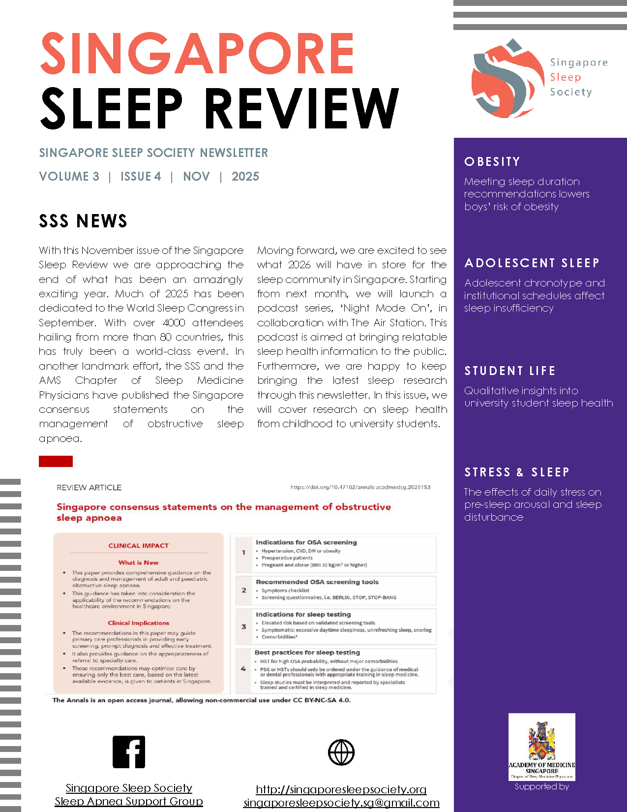 Consensus Statements on OSA management issued by the Singapore Sleep Society and the Chapter of Sleep Medicine Physicians of the Academy of Medicine Singapore. A review of best practices adapted to the local context of the Singapore health care system.